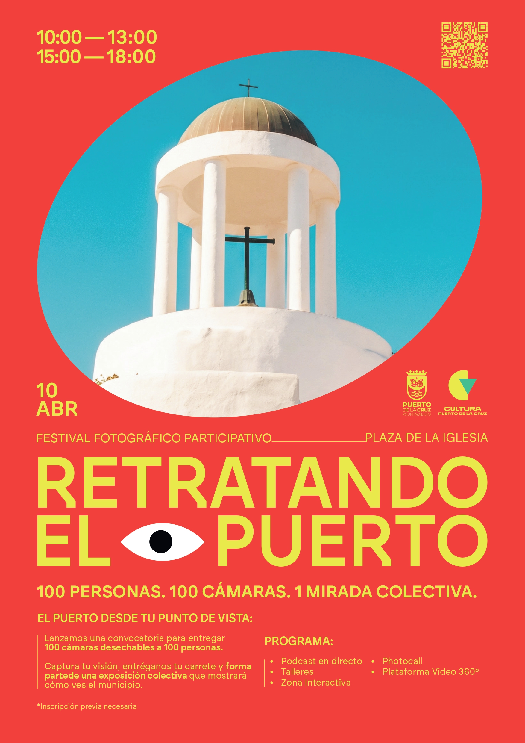 La concejalía de Cultura invita al Festival fotográfico participativo: «Retratando el Puerto» . 100 personas, 100 cámaras y una mirada colectiva han capturado la esencia portuense. Disfruta de plataforma de video 360º, el photocall, talleres familiares, zona interactivas y podcast en directo.