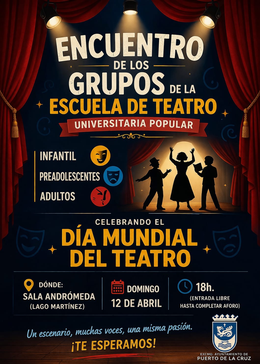 La concejalía de OAL invita al Encuentro de los grupos de Teatro de infantil, preadolescentes y adultos, celebrando el Día Mundial del Teatro.