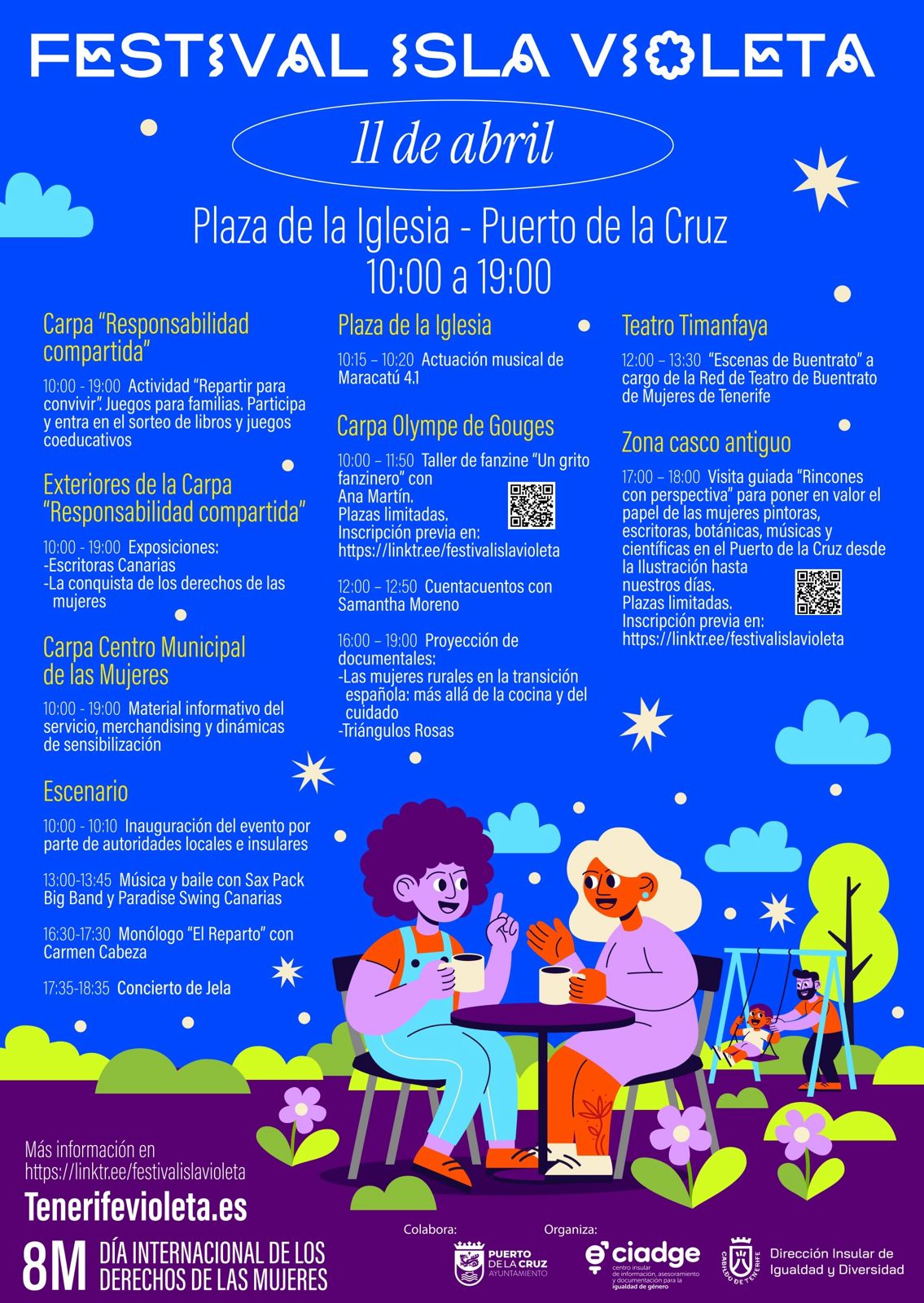 La concejalía de Igualdad y el área de Mujer organizan el Festival Isla Violeta, una jornada con talleres, música, teatro, humor, cuentacuentos, fanzines y juegos. Entrada gratuita hasta completar aforo.