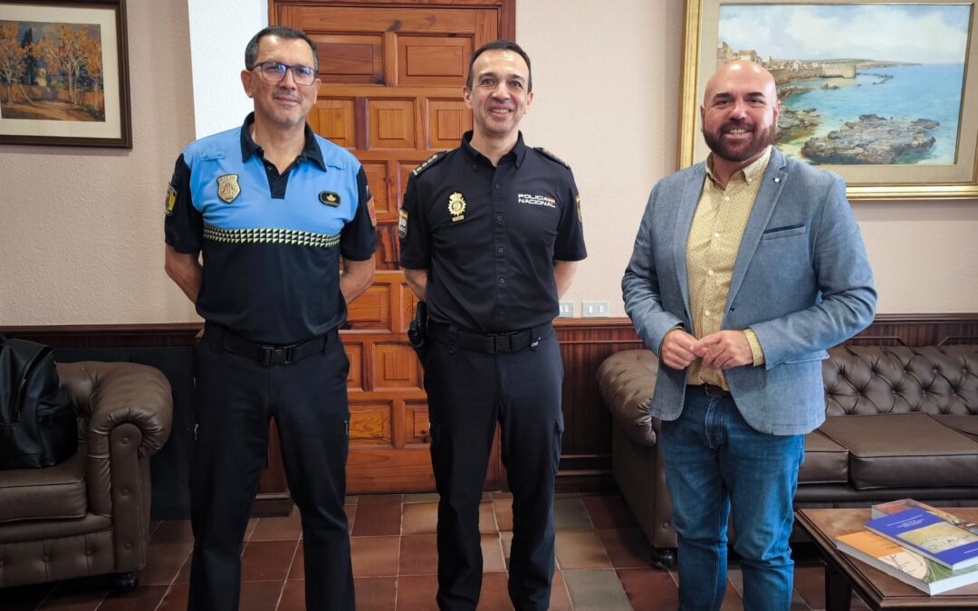 El alcalde de la ciudad, Marco González, recibió esta mañana, en las casas consistoriales, la visita del nuevo responsable provincial del Cuerpo Nacional de Policía (CNP), el comisario Eloy Román López, con quien mantuvo un encuentro de trabajo, acompañado del Jefe de la Policía Local Francisco Casañas.