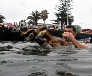 Poco a poco, los cabreros llegados de las zonas de medianías y cumbres del Valle de La Orotava, fueron haciendo acto de presencia en el casco de la ciudad turística hasta llegar al mar, donde se celebra este rito de fertilidad, orientado a renovar y encomendar a la divinidad el celo en los animales.