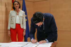 Lope Afonso firma el compromiso DTI ante la mirada de la ministra