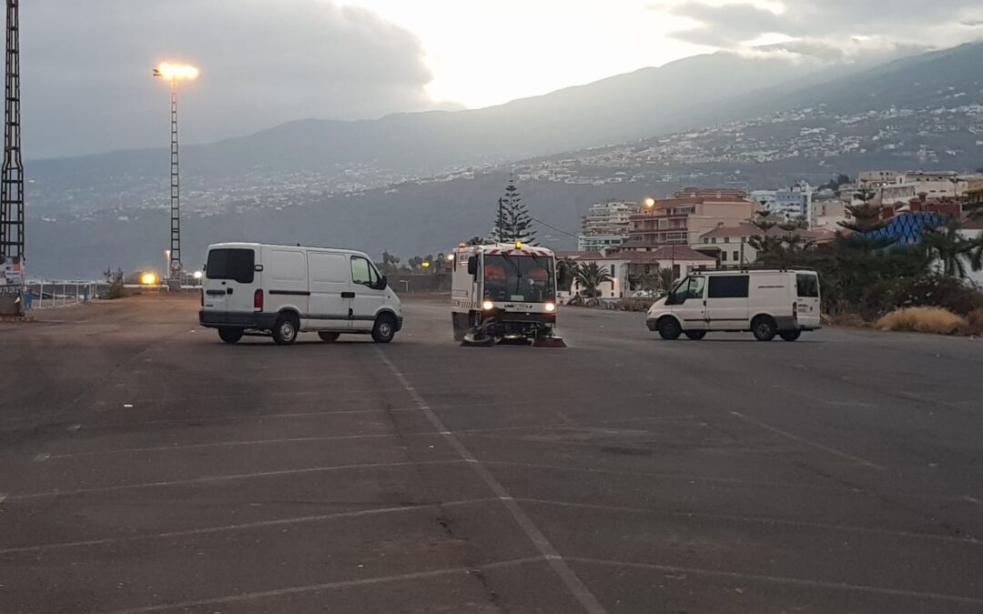Puerto de la Cruz, 2 de agosto de 2019.- Tras las Grandes Fiestas de Julio, período en el que se recibe a miles de visitantes tanto de los eventos como de la feria instalada en el espacio de la explanada del muelle, el área de Bienestar Comunitario que lidera la concejala Flora Perera ha procedido con la empresa de servicios y personal del Ayuntamiento a la limpieza, de forma más intensiva e integral, tanto de la zona alta de los aparcamientos como de la más cercana al muelle pesquero de la ciudad.