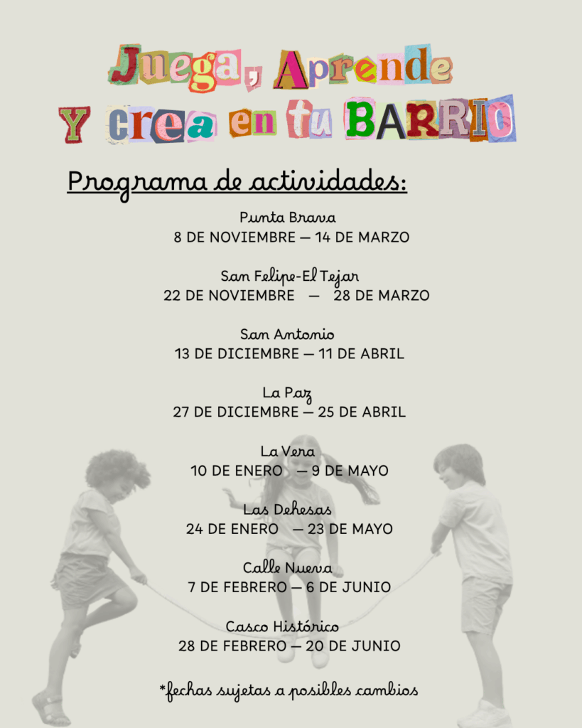 La Concejalía de Infancia pone en marcha este nuevo programa en los barrios de Puerto de la Cruz, con el objetivo de ofrecer a nuestros niños y niñas espacios donde divertirse, aprender y compartir, mientras damos juntos los primeros pasos para convertirnos en una “𝗖𝗶𝘂𝗱𝗮𝗱 𝗔𝗺𝗶𝗴𝗮 𝗱𝗲 𝗹𝗮 𝗜𝗻𝗳𝗮𝗻𝗰𝗶𝗮” reconocida por UNICEF.
