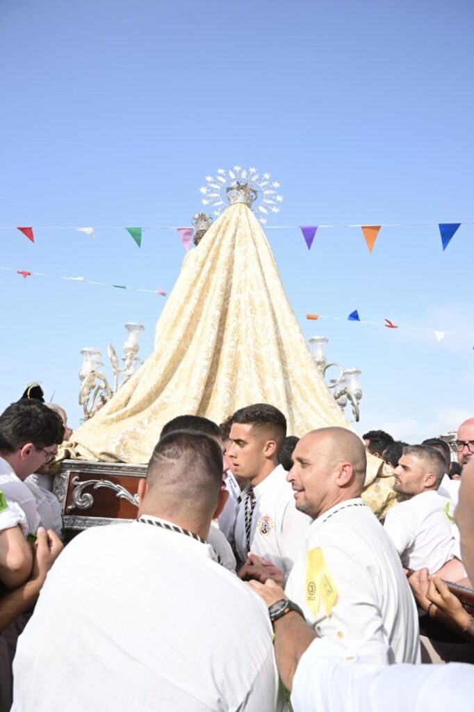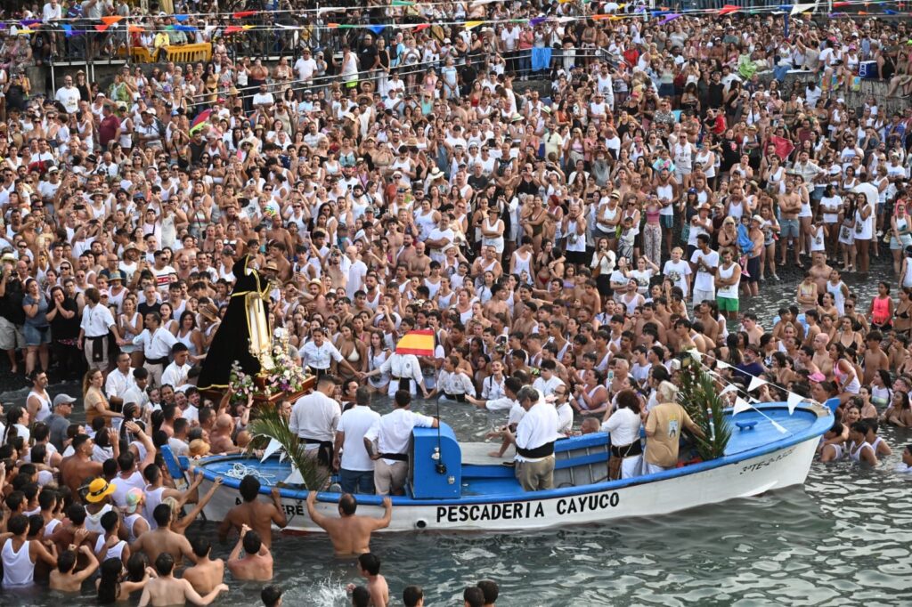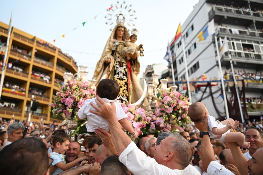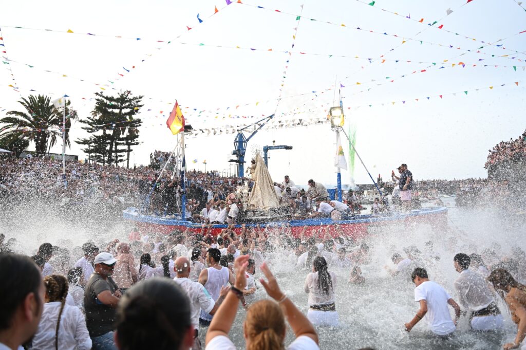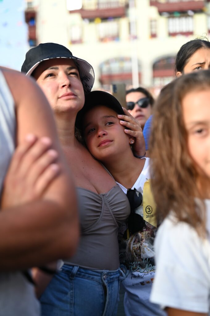 Miles de personas se congregaron este pasado martes en las calles del casco y el muelle pesquero para acompañar a las veneradas imágenes en su recorrido, que comenzó en la calle Quintana y continuó por Santo Domingo y La Marina, donde tuvo lugar una emocionante exhibición pirotécnica antes del embarque, el momento más esperado de las grandes fiestas. El instante en el que los cargadores alzaron las imágenes al cielo para ser embarcadas fue uno de los más simbólicos de la jornada. El público, entre emoción contenida y aplausos, aguardaba escuchar la frase que marca el inicio de la travesía: “¡No pasa nada, la Virgen está embarcada!”.