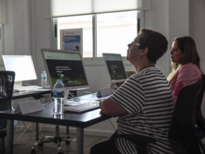 Ruraltivity se dirige a la adquisición y consolidación de competencias claves para el emprendimiento y el autoempleo a través del desarrollo de talleres formativos. Begoña Martín y Mercedes Romero, promotoras de Igualdad de la Lanzadera de Fademur, realizaron la presentación de los talleres y el asesoramiento individualizado que ofrecen. A través de la plataforma web www.ruraltivity.es ofrecen 13 cursos online para adquirir competencias y conocimientos sobre yacimientos de empleo innovadores en el medio rural.
