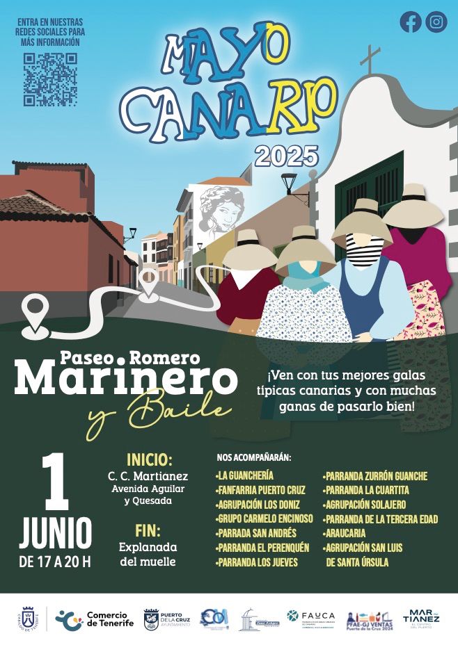 Durante el evento, contaremos con la participación de increíbles agrupaciones que animarán el ambiente con su música: – La Guanchería – Fanfarria Puerto Cruz – Agrupación Los Doniz – Grupo Carmelo Encinoso – Parranda San Andrés – Parranda El Perenquén – Parranda Los Jueves – Parranda Zurrón Guanche – Parranda La Cuartita – Agrupación Solajero – Parranda de la Tercera Edad – Araucaria – Agrupación San Luis de Santa Úrsula