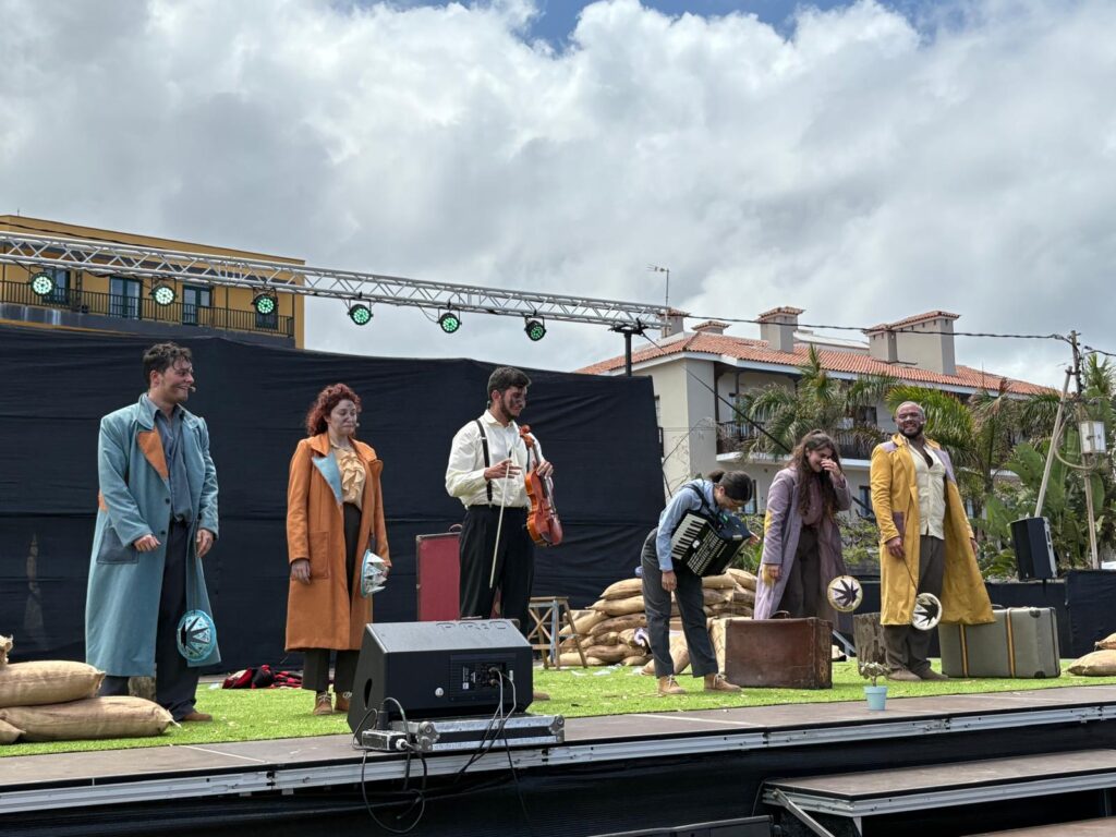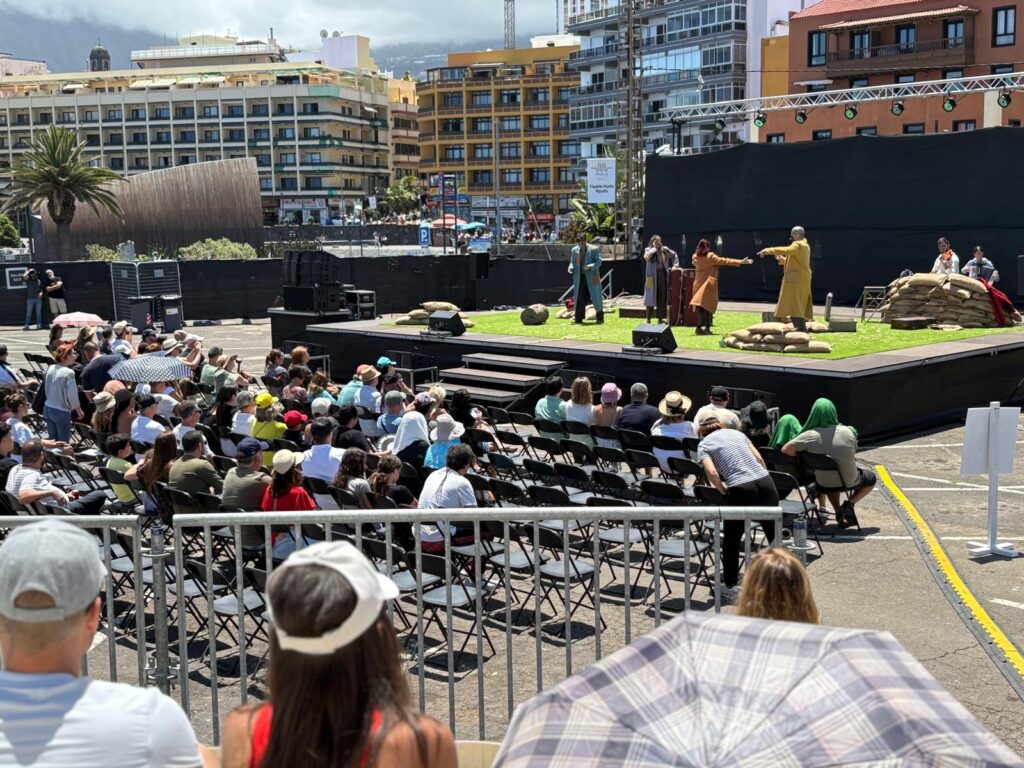 El Festival Internacional de Arte en la Calle de Puerto de la Cruz llega a su destino, las ‘Coordenadas de La Alegría’, tras cuatro días en los que la ciudad se llenó de vida, encuentros, cultura y movimiento Puerto de la Cruz, 11 de mayo de 2025 — El Festival Internacional de Arte en la Calle de Puerto de la Cruz, MUECA, baja el telón de su 23ª edición tras cuatro días de artes escénicas y propuestas para toda la familia. La creatividad, la cultura compartida y la complicidad desbordaron calles, plazas y rincones, transformando a la ciudad anfitriona en un gran auditorio al aire libre. Un espacio donde el circo, el teatro, la danza, la música y otras actividades se convirtieron en la brújula que guió a un público fiel por las Coordenadas de la Alegría. Todo ello, gracias al trabajo realizado por el Ayuntamiento portuense y la plataforma Cómplice MUECA. Desde el primer aplauso del jueves hasta la última sonrisa del domingo, el público se dejó cautivar por una programación que invitaba a descubrir la belleza y la emoción del arte, aderezada con los paisajes de Puerto de la Cruz. En total, 35 propuestas se sumaron a esta edición que continuó apostando por el talento local y que abrió puertas a montajes profesionales y contemporáneos de otras latitudes. De esta manera, Abubukaka volvió a MUECA con Foscurí, tan feroces y divertidos como de costumbre, con llenos absolutos desde la primera función. Copenhagen Collective, desde Dinamarca, recordó con The Genesis que la colaboración también es arte. Rogu dio luz a la noche con su espectáculo de fuego Mobius. Y Grupo Puja logró paralizar a Puerto de la Cruz con Verne, una fantasía aérea que fusionó ciencia, emoción y vuelo. El Universo de la Música se volvió geografía sensible con las voces de Fajardo, Julia Rodríguez, Yexza Lara y Nuria Herrero, entre murales que hablaban del territorio y de las raíces y que se escuchaban al caminar por el barrio de La Ranilla, enmarcadas en el proyecto Music Street Art. También emocionaron los ritmos de Bloko, de la Escuela Municipal de Música de Puerto de la Cruz y las voces de los Coros Escolares de la ciudad. La danza puso cuerpo a las emociones. Acerina Amador agitó la memoria colectiva con la muestra de su taller Salsa, sol y resistencia, mientras que nombres como Raquel Jara, Andrea Pérez, Abián Hernández, Carmen Macías, Andrea Catania, La Sísmica, Cía. Carmen Fumero, Traspuesto & DiabloRojo o Cía. El Jablero tejieron gestos que se quedarán suspendidos en la memoria de quienes los vivieron. El humor estalló también con Yiyolo Stratto, Perrakos Soundsystem y Cía. PAI, que hicieron reír, bailar y hacer comunidad. Teatro Só, con la ternura sobre zancos de Sorriso, y Criolla, con sus adaptaciones de Shakespeare, recordaron que el teatro también puede abrazar. Hands Down Circus con Tape That!, Rauxa con La crisis de la imaginación, Emiliano Alessi con Tei Tei, Juriy Longhi con Bubble Street Cirkus, y los ucranianos de Inshi, con Rêves, pusieron el circo al servicio de la metáfora, del riesgo, del asombro. Ángulo Producciones emocionó con su Cazopera, ideal para compartir en familia, y La Pandilla sorprendió en cada esquina con su ambulancia de urgencias escénicas. Hasta el IES María Pérez Trujillo subió al escenario con un Aquelarre Lorquiano que hizo honor a la palabra joven. El clima acompañó, como si supiera que el arte necesita luz. Mientras en otros municipios llovía, Puerto de la Cruz mantuvo el cielo abierto para dejar pasar todo lo que se quería contar, bailar y compartir. El sábado terminó con una fiesta inolvidable de la mano de Perrakos Soundsystem, y el domingo cerró con 12 funciones matinales que demostraron que también se puede celebrar a plena luz del día. Cuatro días donde, además, el Universo Creativo de Urban MUECA y MUECA Literario latió al compás del diseño y la literatura, dos mundos que se dieron la mano en el Espacio Plaza de la Iglesia Asociación Animal Club. Durante esta edición, los espectáculos de MUECA se distribuyeron en más de una decena de espacios escénicos repartidos por toda la ciudad. Desde el mencionado Espacio Plaza de la Iglesia Asociación Animal Club, hasta la intensidad aérea del Espacio Muelle Valoriza o la gran explanada del Espacio Penitente Turismo de Tenerife. También destacaron el acogedor Espacio Plaza Concejil Fundación El Buen Samaritano, el energético Espacio Playa Martiánez Asociación ANTAD, el siempre festivo Espacio Nicko Grupo Compostelana, y el íntimo Espacio Plaza Reyes Católicos Loro Parque Fundación, sin olvidar el emblemático Espacio Muelle Aqualia. Cada uno se transformó en escenario vivo, adaptándose a las disciplinas, las compañías y los públicos, y reforzando así la identidad urbana y abierta del festival. ‘Rêves’, de la compañía ucraniana Inshi, Premio MUECA 2025 En esta edición, el Premio MUECA 2025 fue para la compañía Inshi, de Ucrania, por su espectáculo Rêves, una pieza de circo contemporáneo profundamente conmovedora, nacida en medio del conflicto bélico, donde el cuerpo se convierte en acto de resistencia, belleza y memoria. El jurado otorgó además dos menciones especiales: a Teatro Só, por su sensibilidad poética y su capacidad de emocionar desde el silencio, y a Compañía Criolla, por su vitalidad, humor y cercanía en escena.
