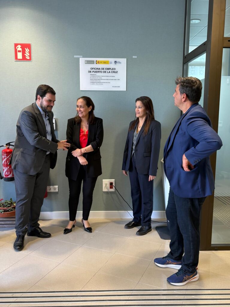 Está mañana se llevó a cabo la inauguración de las nuevas oficinas de empleo en el municipio. Este nuevo espacio, que ve la luz tras más de 6 años desde el proyecto inicial, está diseñado para mejorar la atención a todos los ciudadanos que buscan oportunidades laborales en nuestra localidad, entre otras muchas gestiones que pueden realizar empleados y desempleados. El acto comenzó con el descubrimiento de la placa conmemorativa, realizado por el subdelegado del Gobierno, Jesús Javier Plata; la consejera de Turismo y Empleo, Jéssica de León; y el alcalde, Leopoldo Afonso. También estuvo presente Alberto Cabo, concejal de Empleo, como máximo responsable del área de empleo en el municipio. A este evento asistieron importantes representantes del ámbito laboral, como María Isabel García, directora provincial del Servicio Público de Empleo Estatal (SEPE) en Santa Cruz de Tenerife, y María Teresa Ortega, directora del Servicio Canario de Empleo (SCE). La nueva oficina destaca por su accesibilidad y comodidad, superando las limitaciones del antiguo espacio que ya no podía atender adecuadamente a los ciudadanos. Con esta nueva ubicación, se busca no solo mejorar la atención al público, sino también proporcionar un ambiente más amplio y cómodo para los empleados. Esto permitirá ofrecer un servicio más eficiente y personalizado a todas las personas que buscan empleo. Durante el acto, los asistentes realizaron un recorrido por las instalaciones y pudieron apreciar las mejoras implementadas. Esta inauguración representa un paso significativo hacia el fortalecimiento del apoyo a quienes buscan empleo en Puerto de la Cruz.