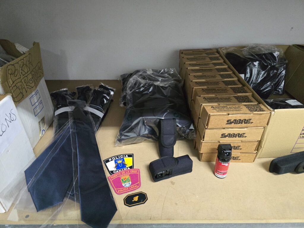 Con gran satisfacción, el alcalde Leopoldo Afonso, quien también está al frente del área de Seguridad Ciudadana, junto al Oficial Josué García Gutiérrez, recibió el nuevo material que incluye una amplia gama de equipamiento esencial y medios defensivos. Entre los artículos entregados se encuentran polos y pantalones para hombres y mujeres, gorros, cazadoras, anoraks, botas de faena, calcetines para invierno y verano, cinturones, cuellos polares, guantes anticorte, así como chalecos reflectantes y fundas para chalecos antibalas. Además, se han proporcionado distintivos municipales, galones para el pecho, porta guantes, linternas, defensas extensibles, grilletes con sus fundas, mochilas para transporte y fundas para cargadores de pistola. También se han incluido elementos más ceremoniales como hombreras y corbatas de gala.