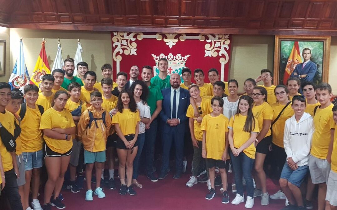 Puerto de la Cruz, 6 de septiembre de 2019.- En el salón de plenos el alcalde Marco González acompañados por los concejales de Promoción Turística Roberto Medina y de Juventud Noemí Fernández recibieron a más de una treintena de jóvenes procedentes del municipio palmero de Puntallana.