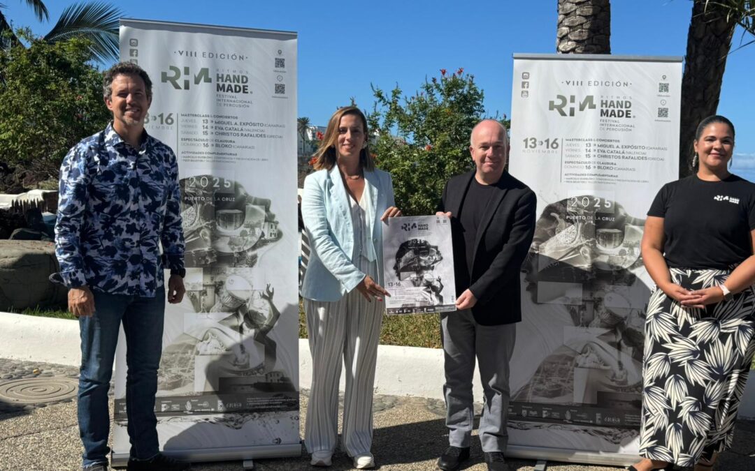 La percusión es una de las familias instrumentales más diversas y fascinantes dentro del ámbito musical y que conecta al ser humano con su propio pulso. Con esa premisa, el Festival Internacional de Percusión Ritmos Handmade ha presentado en rueda de prensa su octava edición que se celebrará del 13 al 16 de noviembre de 2025 en Puerto de la Cruz, con una programación que invita a sentir, aprender y vivir la percusión como lenguaje universal.