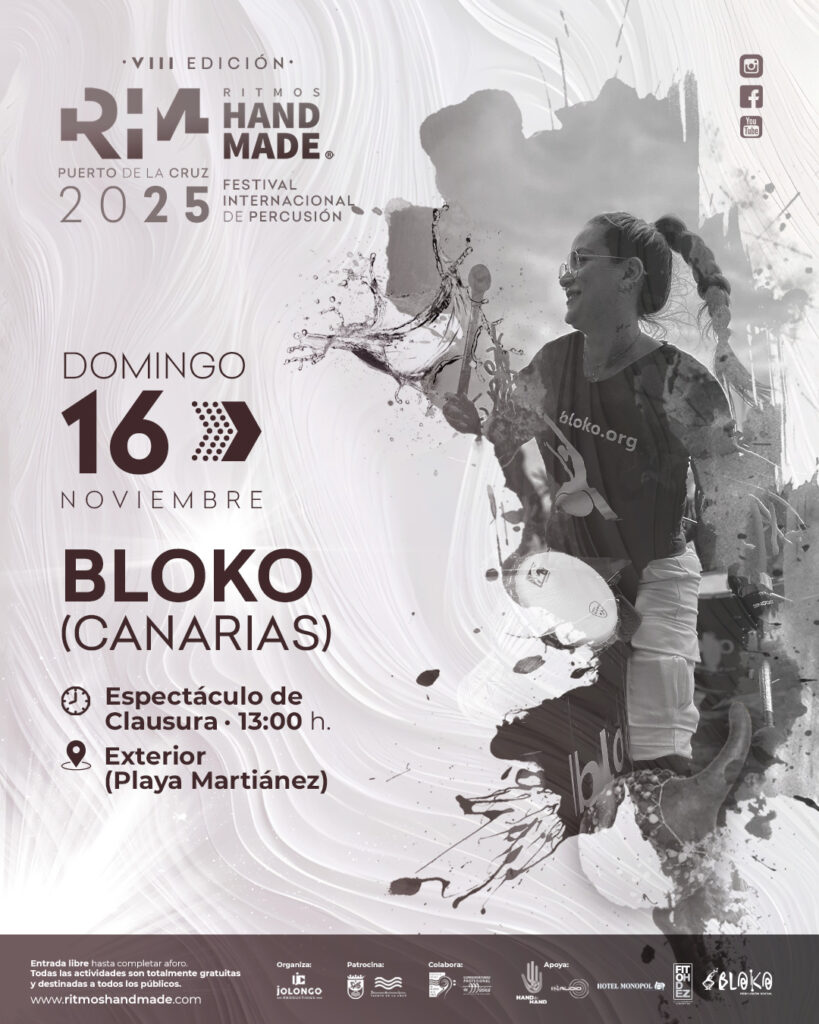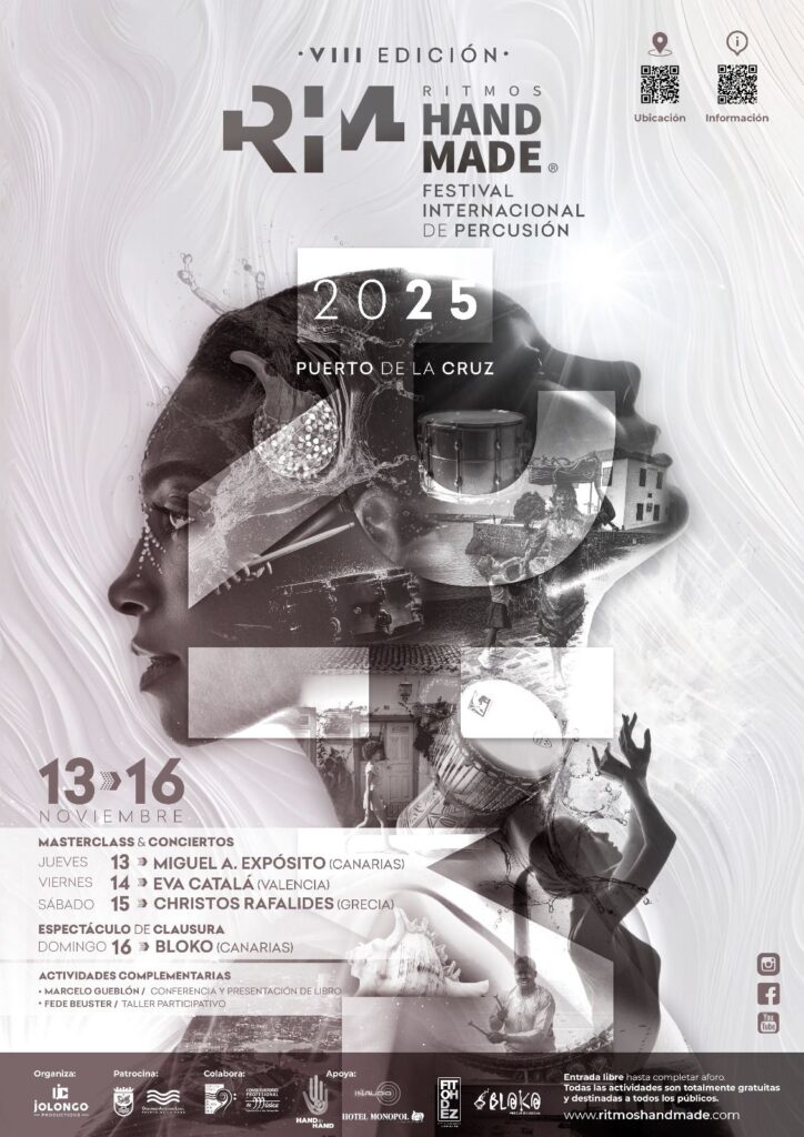 Del 13 al 16 de noviembre, Puerto de la Cruz celebra la VIII edición del Festival Internacional de Percusión Ritmos Handmade, un encuentro que une creación, aprendizaje y participación ciudadana.
