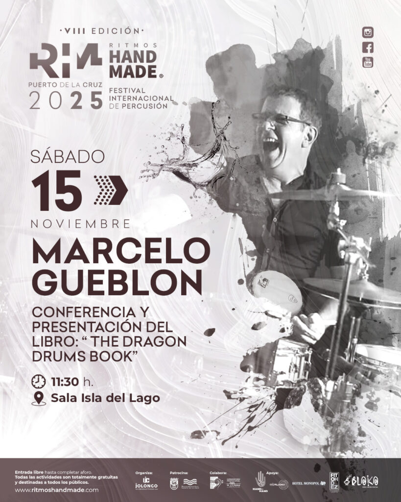 Asimismo, durante la mañana del sábado Marcelo Gueblón (Argentina), autor de la obra de referencia The Real Book of Rudiments, regresará a Ritmos Handmade para presenta su segundo libro The DragON Drums Book.