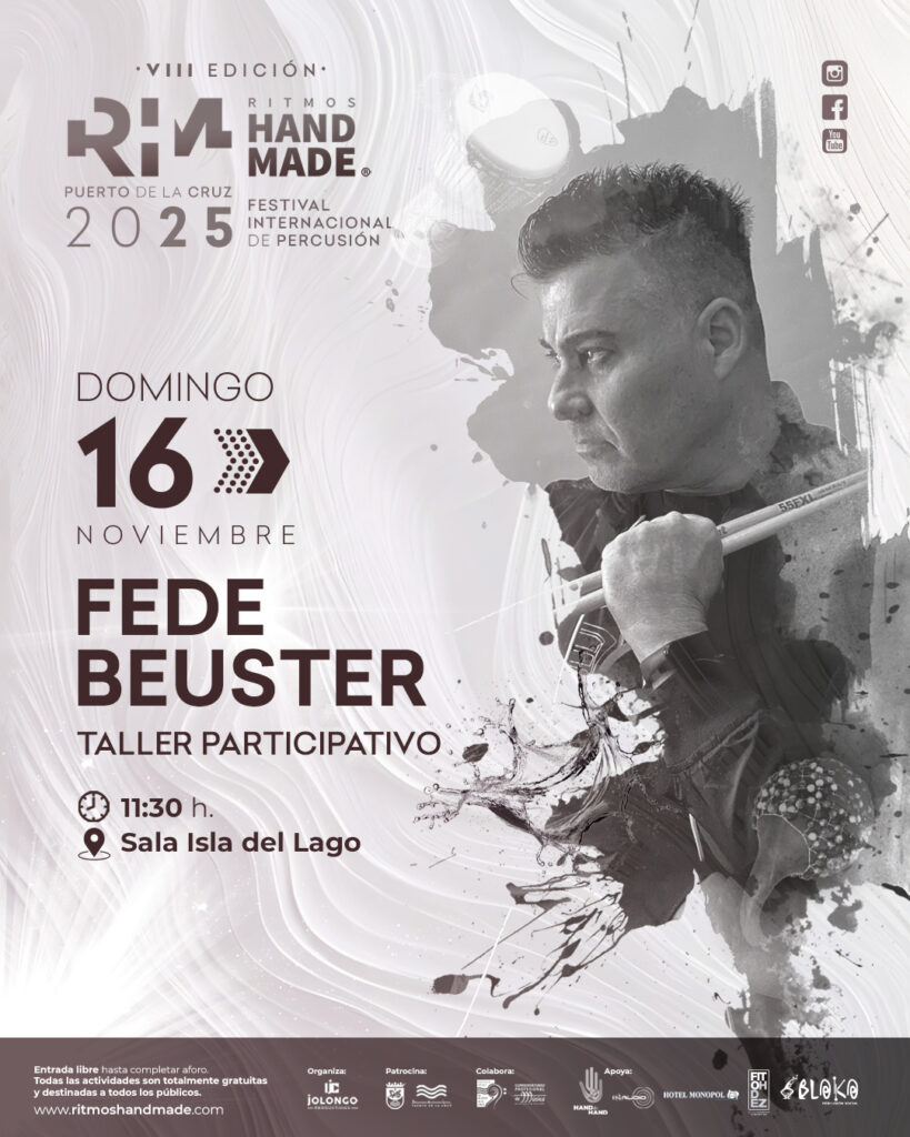 Durante cuatro días, Ritmos Handmade reunirá a artistas nacionales e internacionales, docentes, alumnado y público en una experiencia que combina conciertos, masterclass, talleres y espectáculos, con el propósito de acercar la percusión a todas las personas, desde la formación profesional hasta la participación ciudadana, detalló Yudi Acosta, directora del Festival. “Ritmos Handmade es una forma de vida, un punto de encuentro, una manera de mirarnos y de reconocernos y quiero extender un especial agradecimiento a todas las personas y entidades que nos apoyan y en especial a quienes conforman la plataforma ciudadana Hand to Hand que sienten y hacen suyo el Festival”, remarcó.