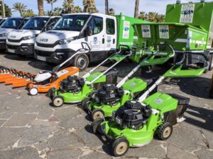 Entre la nueva maquinaria recientemente adquirida por la empresa se encuentran novedades como trituradoras de material vegetal portátiles, que permiten reducir los transportes requeridos para el desplazamiento de los restos de las labores culturales, reduciendo de esta manera las emisiones de CO2. Además, el servicio contará con nuevos camiones cisterna, basculantes de diferente volumetría, maquinaria de carga y volteo, y vehículos para el desplazamiento del personal y herramientas.